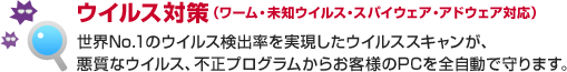 通常の定義ファイルチェックのほかに、マルウェア情報を収集するオンライン上のマカフィーデータベースで最新情報をチェックし、新種マルウェアをブロックします。