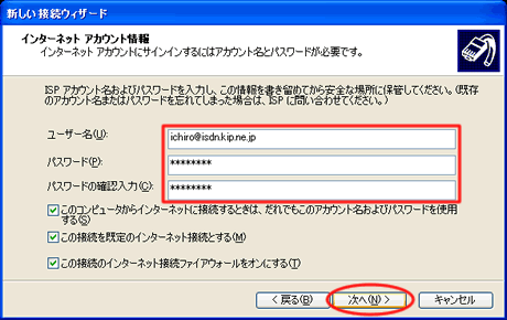 Windowsでの設定-フレッツISDN-WindowsXP 設定方法