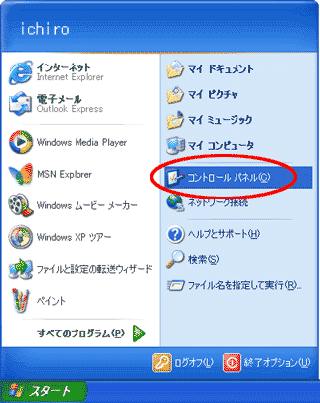 [スタ−ト]メニュ−から[コントロ−ルパネル]を選択します。