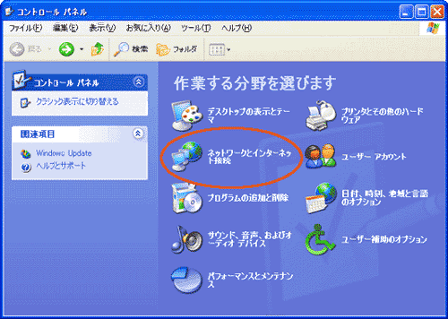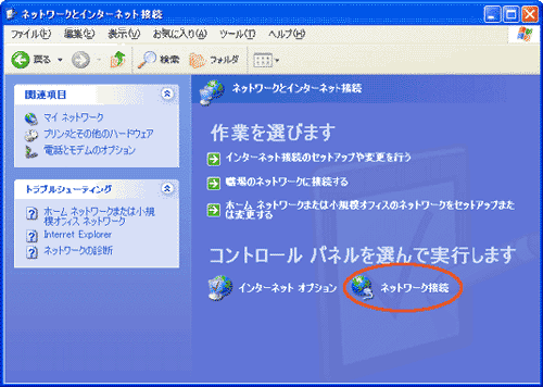 [コントロールパネルを選んで実行します]の[ネットワーク接続]を選択します。