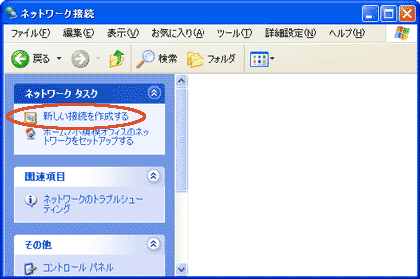 [ネットワークタスク]から[新しい接続を作成する]をクリックします。