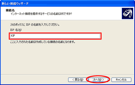 - ISP名:KIP(任意の名前でも構いません。)